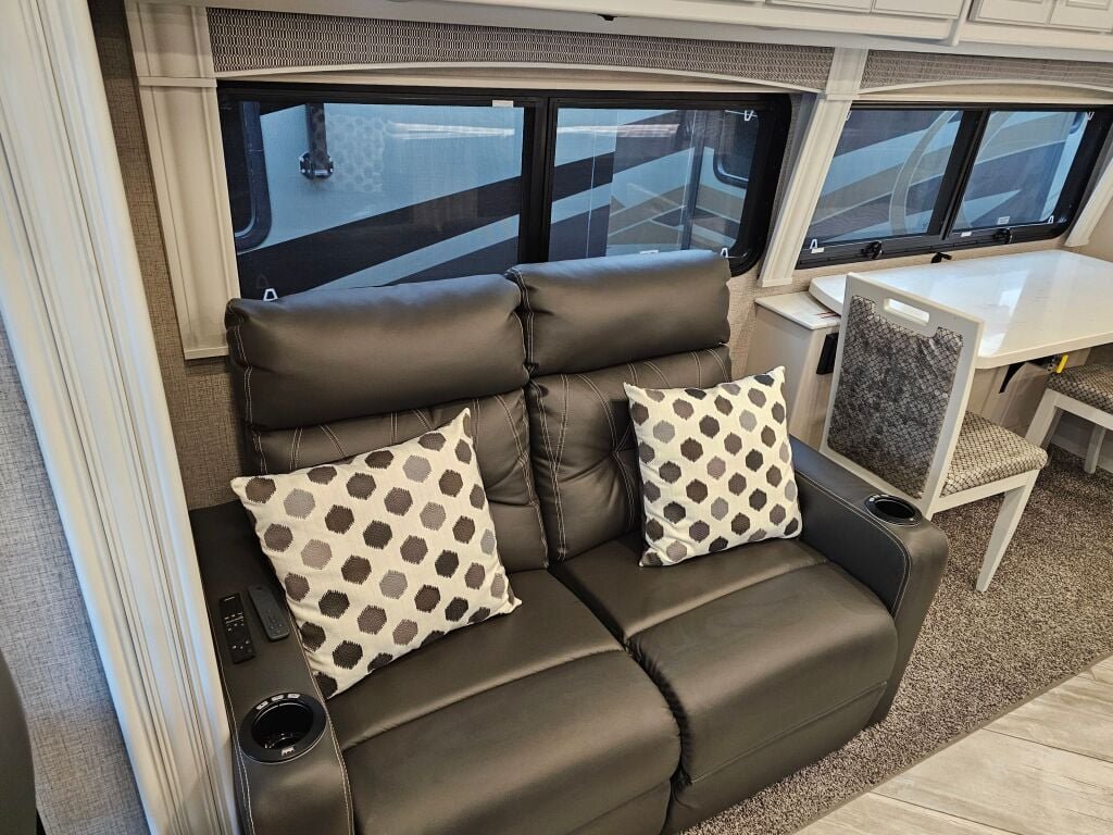 Discover the adventurous spirit of RVing with the stunning 2022 Fleetwood Discovery 36Q, a remarkable used recreational vehicle that combines comfort and functionality in an impressive 36.09-foot length. Crafted for creating unforgettable memories, this RV is equipped with a powerful Cummins diesel engine, making it perfect for both short getaways and epic journeys across the country. Designed to accommodate up to seven people, it provides ample sleeping space, enabling families and friends to enjoy their travels together. The four slide-outs enhance the living area, creating an expansive and inviting atmosphere for relaxation or entertainment. You will also appreciate the convenience of front and rear leveling jacks, ensuring stability on any terrain. With a towing capacity of 10,000 pounds, this RV offers the flexibility to bring along additional gear for all your adventures. The single awning adds to your outdoor enjoyment, providing a shaded area to unwind. Whether you are embarking on a family road trip or a weekend escape, this RV embodies the freedom and joy of the open road. As a family-owned, award-winning local RV dealer with multiple locations in Sumner, Everett, Kent, and Mt. Vernon Washington, Poulsbo RV is here to help you find the perfect RV. Stock#: CCX5007, VIN: 4UZACGFC8NCNL9599.