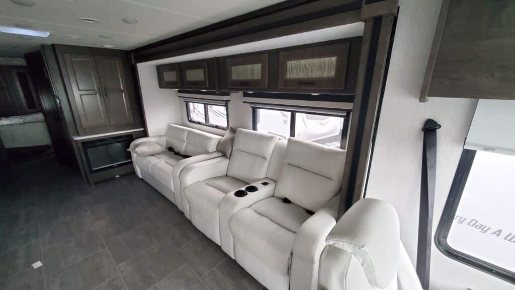 Discover the remarkable features of the 2023 Coachmen Sportscoach 403QS, a splendid choice for RV enthusiasts seeking adventure on the road. This new RV measures an impressive 41 feet in length and is powered by a robust Cummins diesel engine, providing you with the reliability and performance needed for your travels. With a Gross Vehicle Weight Rating of 22,046 pounds and a towing capacity of 10,000.17 pounds, this RV is designed for those who value both power and comfort. The spacious interior offers ample room for relaxation and entertainment, accommodating up to eight people easily. The living area is enhanced by four slide-outs, creating a flexible space that is perfect for families. Equipped with one awning, this RV offers an ideal outdoor area for gatherings or quiet evenings under the stars. It features both front and rear power leveling jacks, ensuring stability and convenience upon arrival. The absence of a bunkhouse design provides added space and comfort in the sleeping arrangements. As a family-owned, award-winning local RV dealer with multiple locations in Sumner, Everett, Kent, and Mt. Vernon Washington, Poulsbo RV is here to help you find the perfect RV. Stock#: K5830, VIN: 4UZAB2FC4PCUN3098.