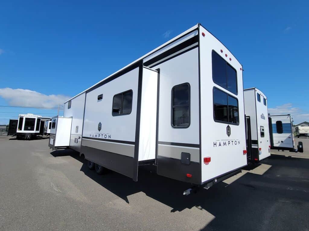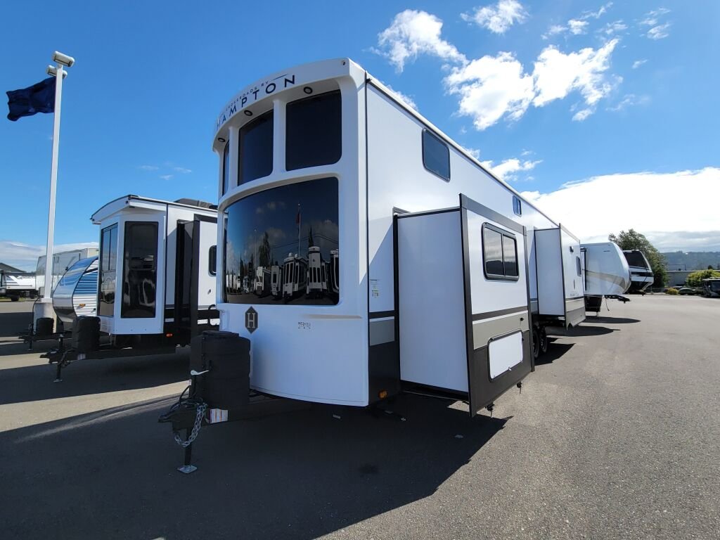 Introducing the 2024 Crossroads Hampton HP375DBL, a remarkable travel trailer designed for families and adventure seekers. This impressive RV measures 41.67 feet in length and boasts a dry weight of 11,696 pounds, making it ideal for comfortable journeys. It offers a generous sleeping capacity for up to seven people, ensuring there is plenty of space for everyone. With one awning and three slide-outs, you will enjoy an enhanced living area that provides flexibility and room to relax. This new model features audio and entertainment amenities, elevating your RVing experience to a new level. The front and rear power leveling jacks make setup and takedown a breeze, allowing you to focus on enjoying your travels. With a GVWR of 13,610 pounds and a hitch weight of 1,610 pounds, this trailer is built for stability and ease of towing. Additionally, the inclusion of a bunkhouse makes it a perfect choice for families, providing extra sleeping space without sacrificing comfort. As a family-owned, award-winning local RV dealer with multiple locations in Sumner, Everett, Kent, and Mt. Vernon Washington, Poulsbo RV is here to help you find the perfect RV. Stock#: M3467, VIN: 4YDTHPT2XR9330407.