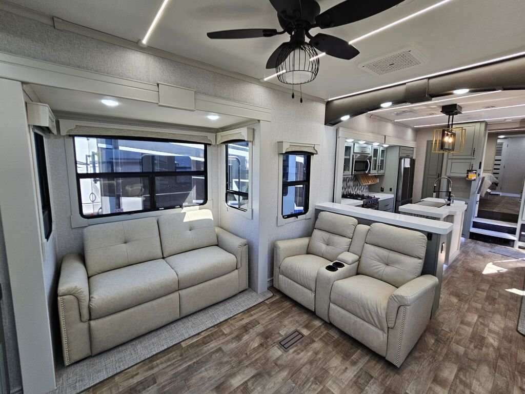 Introducing the 2024 Crossroads Redwood RW4150RD, an exceptional fifth wheel RV designed for families who crave adventure and comfort on the road. Measuring an impressive 44.95 feet in length, this spacious RV is ideal for both weekend getaways and extended trips. The condition is brand new, ensuring that the entire experience is fresh and ready for your family’s journeys. With a sleeping capacity for up to six individuals, everyone will have ample room to rest after a day filled with exploration. The Redwood features five slide-outs, significantly enhancing your living space and providing a homey atmosphere. This RV is equipped with two awnings, offering plenty of shade when you relax outside. Enjoy all the modern conveniences with front and rear power leveling jacks, making setup easy and efficient. The audio system is designed for entertaining, creating a perfect environment for family gatherings. At a dry weight of 15,824 pounds, this RV is well-balanced and manageable, with a hitch weight of 2,934 pounds for easy towing. The impressive GVWR stands at 18,832 pounds, giving you the freedom to bring all the essentials along. With a towing capacity of 3,000.05 pounds, your adventures can include outdoor toys or additional transport. As a family-owned, award-winning local RV dealer with multiple locations in Sumner, Everett, Kent, and Mt. Vernon Washington, Poulsbo RV is here to help you find the perfect RV. Stock#: K5986, VIN: 4YDFRWV21R9340180.