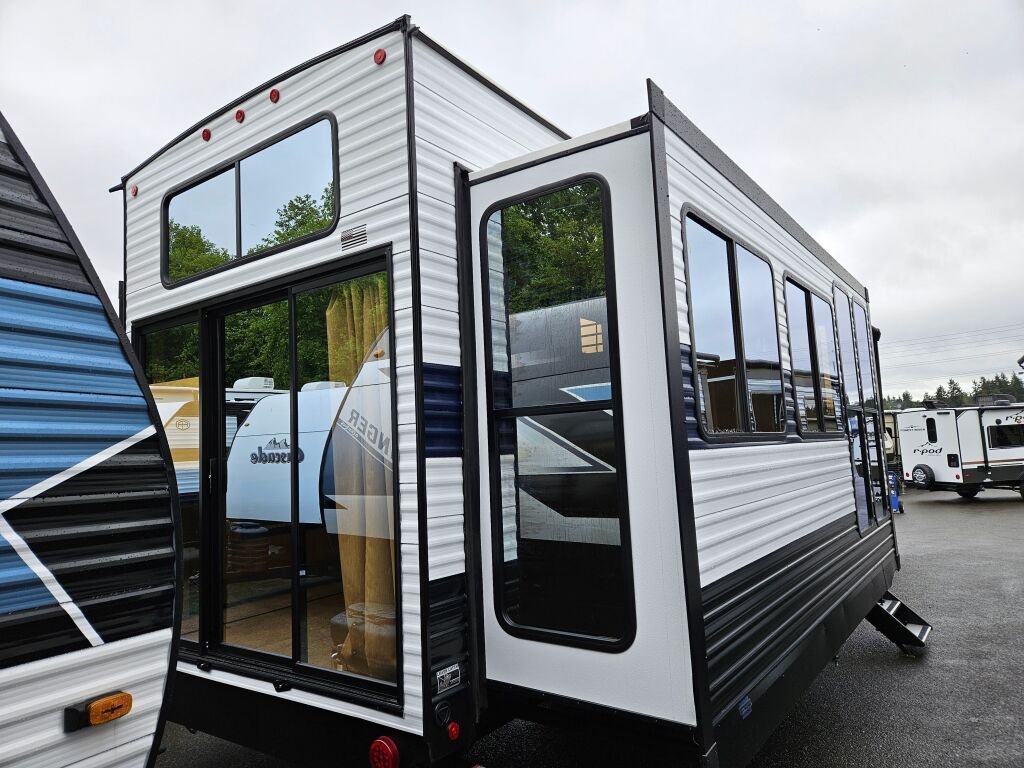 Introducing the 2025 Forest River Cascade 39JM, an exceptional travel trailer designed for families who enjoy the great outdoors. This RV measures an impressive 43.31 feet in length and has a dry weight of 12,589 pounds, making it spacious yet manageable for your adventures. With a gross vehicle weight rating of 13,465 pounds and a hitch weight of 1,465 pounds, you can feel secure knowing it is built for reliable use. The Cascade model perfectly balances comfort and functionality, offering a sleeping capacity of up to eight people. Its three slide outs significantly enhance the living area, allowing for ample space to relax after a day of exploration. You will appreciate the convenience of the front and rear manual leveling jacks, which ensure a stable setup at any campsite. Additionally, this RV comes equipped with an awning, perfect for creating a shaded outdoor gathering spot. The Cascade is a new model, which means it has never been used and is ready for its first journey. As a family-owned, award-winning local RV dealer with multiple locations in Sumner, Everett, Kent, and Mt. Vernon Washington, Poulsbo RV is here to help you find the perfect RV. Stock#: FCE537, VIN: 5ZT2CK4B7S1003464.