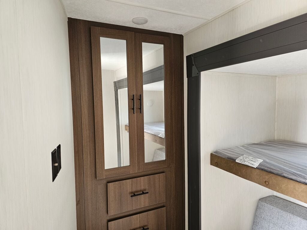 Introducing the 2025 Forest River Wildcat 304MBX, an exceptional travel trailer designed for those who seek adventure on the open road. Measuring an impressive 35.6 feet, this new RV offers ample space and comfort for family trips or gatherings with friends. It boasts a generous sleeping capacity of nine, making it one of the most accommodating options available for larger groups. With two slide-outs, you can enjoy a spacious living area that feels more like home, providing extra room to move around freely. The well-appointed interior includes a bunkhouse, making it a perfect choice for families with children, ensuring everyone has their own cozy nook to relax in after a day of exploration. This trailer is built with a dry weight of 7671 pounds and offers a gross vehicle weight rating of 9568 pounds, providing a stable and secure ride whether you are parked or on the move. Leveling is easy with front and rear manual jacks, supporting quick setup at your campgrounds. Additionally, it features one awning, offering shade and comfort for outdoor lounging. With a hitch weight of 768 pounds, this model is engineered for a responsive towing experience. As a family-owned, award-winning local RV dealer with multiple locations in Sumner, Everett, Kent, and Mt. Vernon, Washington, Poulsbo RV is here to help you find the perfect RV. Stock#: S695, VIN: 4X4TWCF23ST019689.