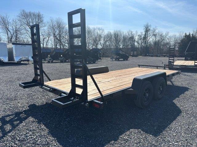 Ladder Ramps 15″W x 5’L, Electric Brakes, Deck 82″W x 18’L, 5200lb Leaf Spring Axles, Tires 22575R15 Radials, 2-5/16″ Coupler, Wood Deck, Tongue Jack, 5″ Channel Frame
