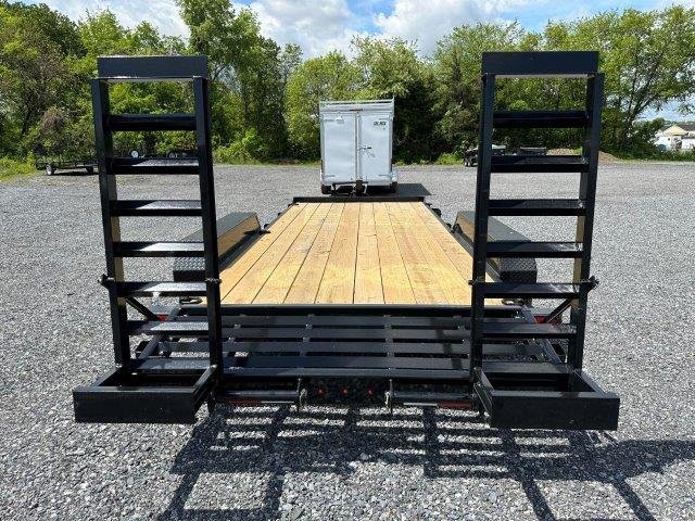 5′ Ladder Ramps, Deck 81″W x 18’L, 16′ Wood Deck Plus 2′ Self-Cleaning Beavertail, Electric Brakes, 7000lb Spring Axles, Tires 235/80/R16, Adjustable Coupler, Stake Pockets, D-Rings, 12K Jack with Drop Leg, LED Lights, Safety Chains, 7 Way RV Style Electrical Plug, Diamond Plate Fenders, Channel Frame