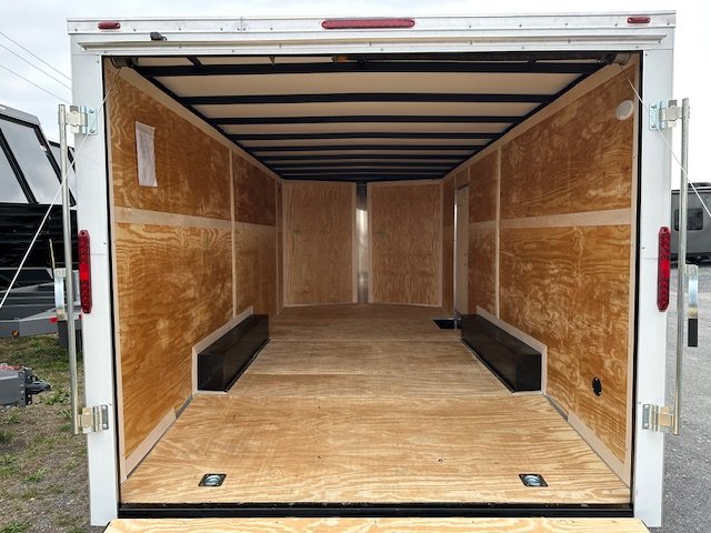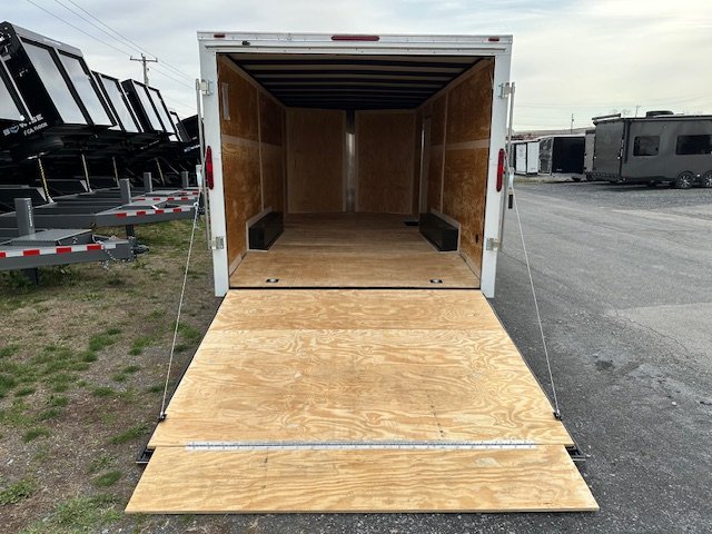 12V Dome Light, Bar Latch Side Door, 4 5,000lb D-Rings, V-Nose, Side Door Step Well, 3/4″ Plywood Floor, Tube Steel Frame Structure, Ramp Door Transition Flip, Safety Chains, Tongue Jack, Spring Assist Ramp Door, Diamond Plate Stone Guard, Diamond Plate Nose Vertical Trim, Pass Through Wall Vents, 7-Way RV Style Electrical Plug, LED Tail Lights, Leaf Spring Suspension, ST225/75R15 Radial Tires, Interior Width 82″ Between Fenders – 97″ Between Walls, Rear Door Dimensions 90″ Wide x 78″ Tall, Side Door Dimensions 31″ Wide x 73″ Tall, Interior Height 79″,Extended Tongue With Adjustable 2 5/16″ Coupler, 5200LB Axles