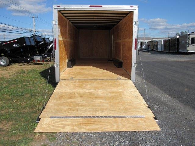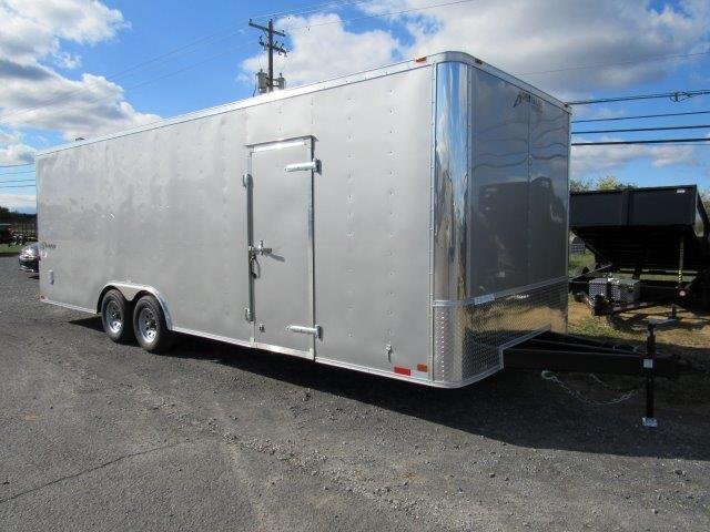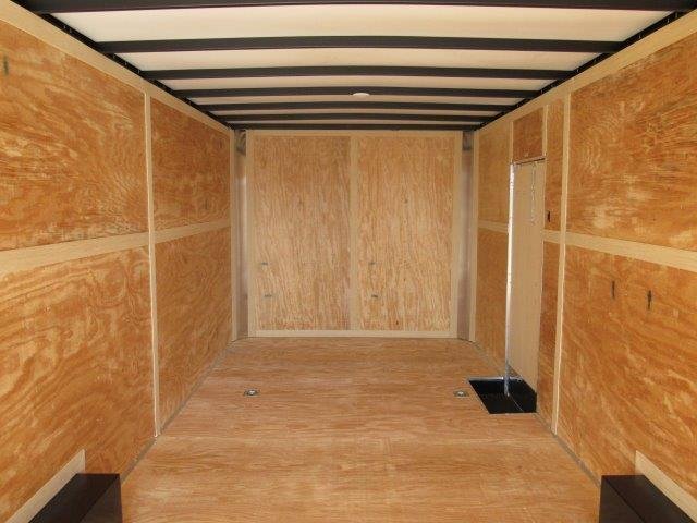 Rear Ramp Door and Side Door, Brakes, Deck 8’W x 24’L, Rear Door 90″ W x 83″ T, Side Door 32″ x 73″ T, Interior Height 84″, 5200lb Spring Axles, Tires 22575R15 Radials, Adjustable 2-5/16″ Coupler, Dome Lights, Wall Vents, 3/8″ Plywood Walls, 3/4″ Plywood Floors, D-Rings, 6″ Added Height, Extended Tongue