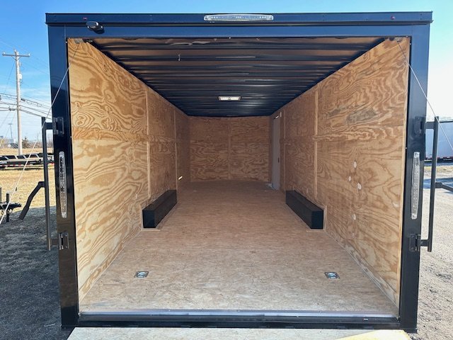 Rear Ramp Door and Side Door, Electric Brakes, Deck 95″ W x 24’ L Plus 24″ V-Nose, Rear Door 90″W x 76″T, Side Door 45″ W x 76″ T, Interior Height 79″, 5200lb Leaf Spring Axles, Radial Tires 22575R15, 2 5/16″ Coupler, V-Nose, RV Latch, Roof Vent